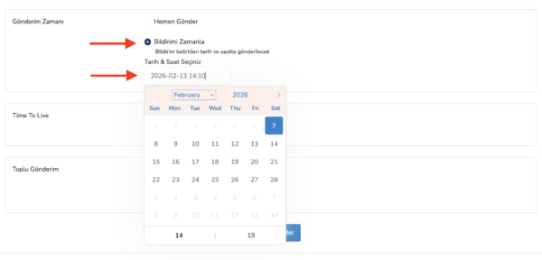 - Açılan takvimden bildirimin gönderileceği tarih ve saati belirleyin