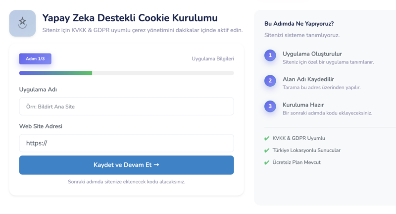Bildirt Çerez Yönetim Platformu (CMP), web sitenizin kullanıcı izinlerini veri koruma düzenlemelerine uygun şekilde yönetmesini sağlayan teknik bir altyapıdır. KVKK, GDPR ve benzeri regülasyonlar kapsamında kullanıcıdan açık rıza alınmasını, bu rızanın kayıt altına alınmasını ve teknik olarak uygulanmasını sağlar.