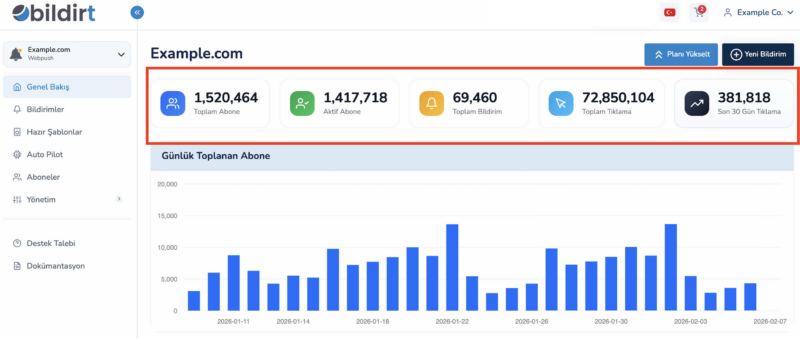 Web sitenizin ziyaretçilerine tarayıcı üzerinden anlık bildirim göndermenizi sağlar.