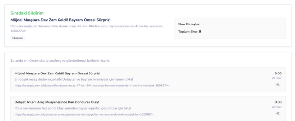 En yüksek skora sahip içerik, bir sonraki bildirim olarak seçilir.