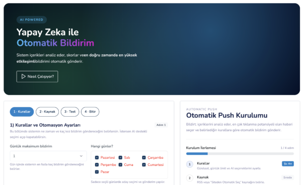 push bildirimi gönderen yapay zeka destekli otomasyon sistemidir.