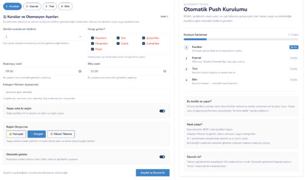 - Gönderilen Bildirimler: Bugün AI Autopilot tarafından gönderilen bildirim sayısı