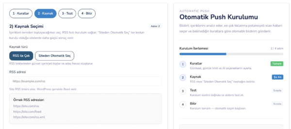 Kurulum tamamlandıktan sonra Otomatik Push Paneline Git
