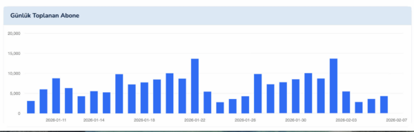 son 30 gün boyunca her gün toplanan yeni abone sayısını gösterir.