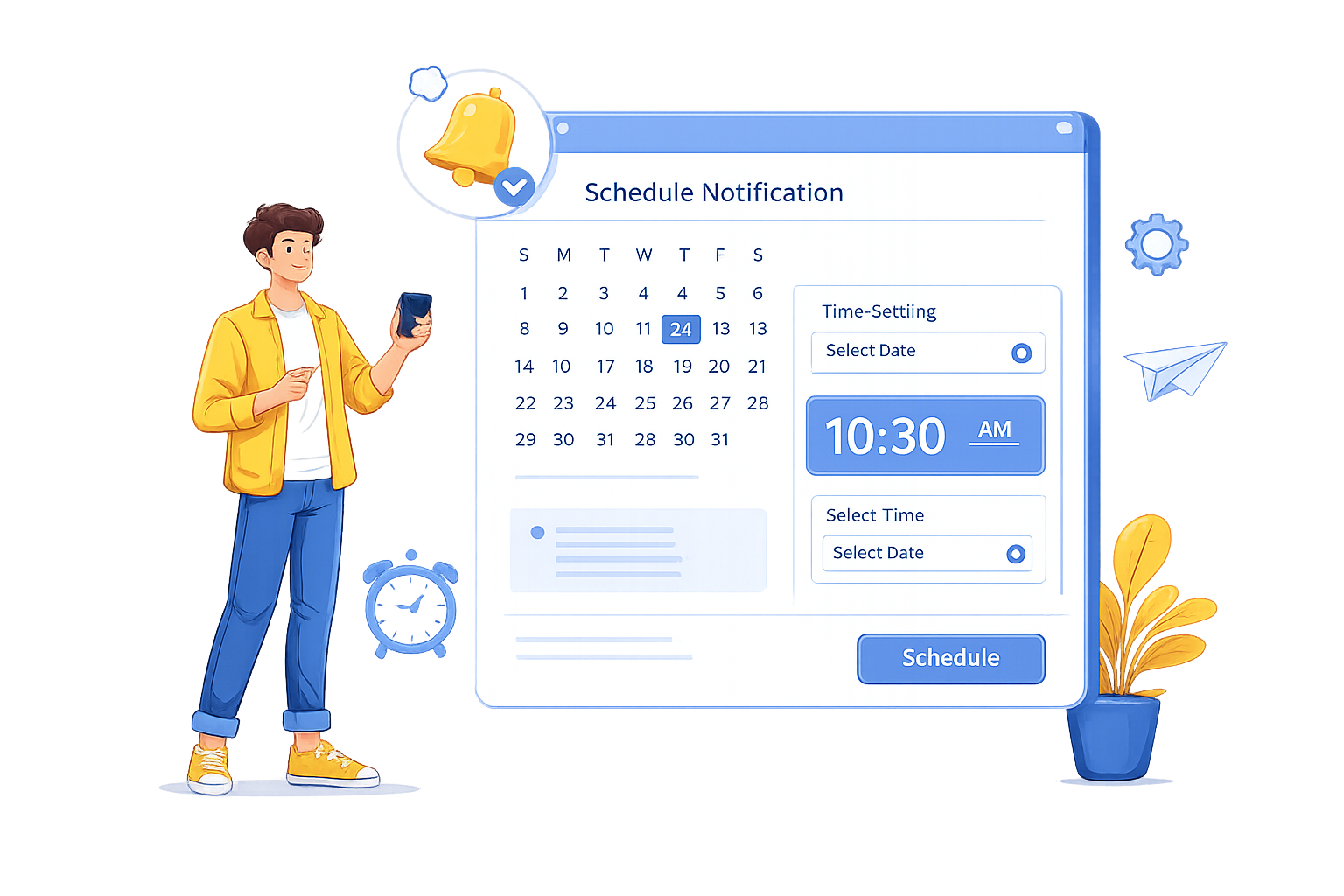 Push bildirimlerini dilediğiniz gün ve saatte gönderin.